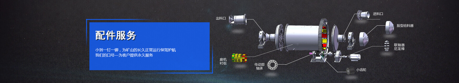 金鵬集團為您提供本公司生產(chǎn)的各種礦山設備的所有配件,型號齊全,性能可靠穩(wěn)定耐用。 此外快捷的電話、網(wǎng)上詢價,讓您一目了然、一步到位。